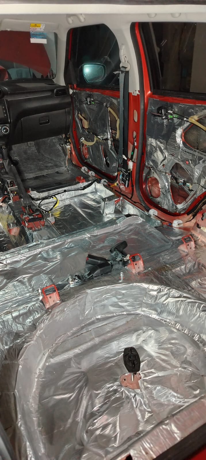 Antes de cada instalación de audio o sonido primero tenemos que trabajar la lámina de la carrocería del carro para un mejor desempeño del equipo de audio, a la hora de tener un ambiente asilado de ruidos hay un mejor desarrollo del equipo (se limpia la escena auditiva).